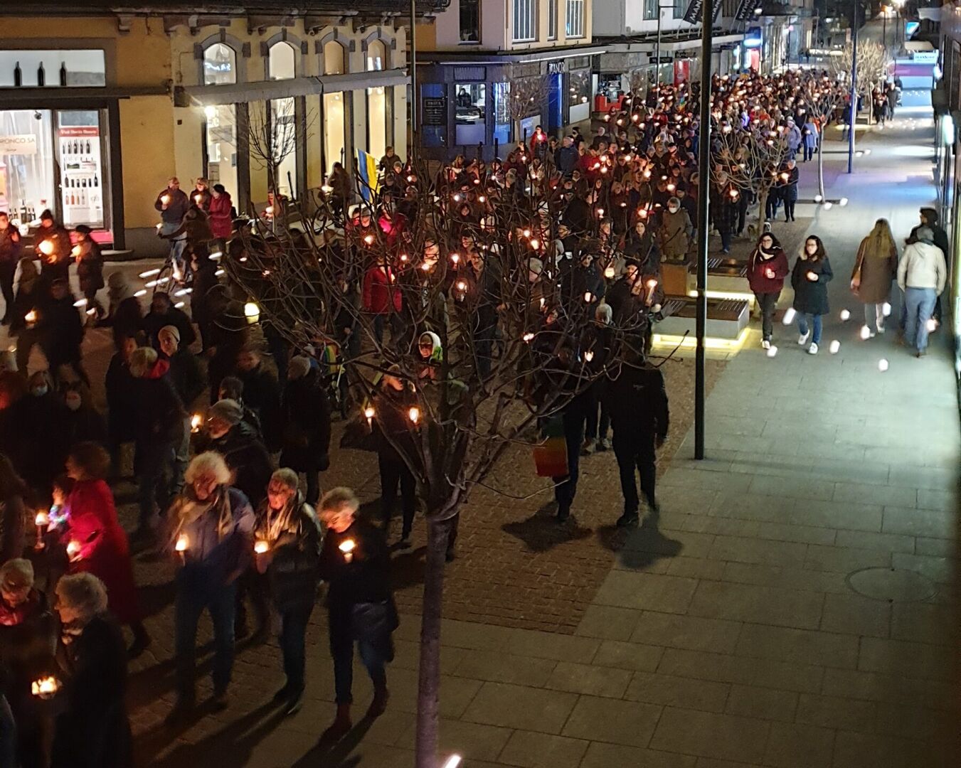 Alla manifestazione di domenica 6 marzo a Bellinzona, sostenuta da una trentina di realtà impegnate nella società civile ticinese, tra le quali anche Azione Quaresimale, la Conferenza Missionaria della Svizzera italiana e l'Associazione Biblica della Svizzera italiana hanno partecipato diverse centinaia di persone. Un evento ben riuscito, svoltosi in silenzio, in cammino dalla Stazione della città fino a piazza Governo. Autorità, cittadini e partecipanti da tutto il Ticino, giovani, famiglie e anziani hanno così espresso la loro solidarietà al popolo colpito dalla guerra. Oltre alla condanna di ogni forma di guerra, la manifestazione ha chiesto alle autorità politiche di attivarsi per:
