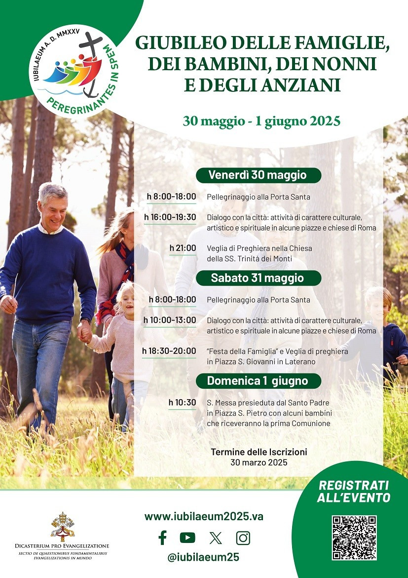 Il Giubileo non è un semplice “tour religioso”, ma un’occasione per rivivere la chiamata dei primi discepoli di Gesù che alla sua voce lasciarono tutto e lo seguirono per iniziare la loro missione per il mondo. Attraverso gesti concreti come il passaggio della Porta Santa nella Basilica di San Pietro – tradizionale ma essenziale - i fedeli potranno sperimentare la misericordia di Dio e ricevere il perdono per i propri peccati ma anche sperimentare, nel sacramento della Confessione, il perdono e l’abbraccio del Padre. Questo gesto simbolico sarà accompagnato da una Veglia di Preghiera dedicata al tema della famiglia come luogo di speranza, che culminerà con la Messa solenne presieduta da Papa Francesco in piazza S.Pietro il giorno seguente.