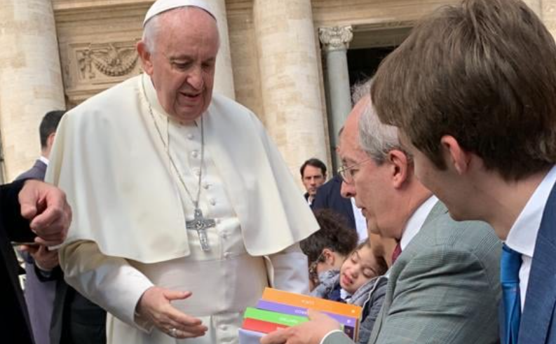 Mercoledì 20 aprile, nel quadro dell’udienza generale di papa Francesco in piazza San Pietro in Vaticano è avvenuto un incontro significativo: quello di un evangelizzatore appassionato e determinato come Jorge Mario Bergoglio con i quattro volumi delle nuove traduzione ecumeniche commentate dei vangeli secondo Marco, Luca, Matteo e Giovanni, curate, tra il 2017 e il 2021 dall’Associazione Biblica della Svizzera Italiana (ABSI - www.absi.ch) e pubblicate dalle Edizioni Terra Santa di Milano con il contributo anche di RKZ (Conferenza centrale cattolica romana della Svizzera ), istituzione della Chiesa cattolica svizzera che sostiene attività culturali e sociali in ambito ecclesiale. In qualità di presidente dell’ABSI e di coordinatore scientifico ed editoriale dell’intero progetto il professor Ernesto Borghi* ha presentato brevemente e donato al Papa questi libri. Essi sono frutto della collaborazione preziosa di qualche decina di esperte ed esperti di varie confessioni cristiane, stati di vita, età e impegno professionale. Così spiega Borghi: "Due comuni denominatori contraddistinguono colleghe e colleghi coinvolti, oltre alla notevole competenza tecnica e alla passione formativa: una chiarezza didattica evidente e l’assenza di complessi di superiorità culturale e/o religiosa. Abbiamo pensato che questi testi, già apprezzati da qualche migliaio di persone in Italia e in Svizzera, potessero essere graditi ed utili a papa Francesco proprio per la loro valenza seriamente divulgativa. Il clima dell’incontro, come testimoniano le immagini relative, è stato cordialissimo nello spirito di accoglienza che ha contraddistinto l’attuale vescovo di Roma anche in questa occasione. Varie iniziative sono già state realizzate prendendo spunto dai volumi editi (il quinto e ultimo, relativo agli Atti degli Apostoli, sarà disponibile nell’ottobre 2022). Segnalo in particolare le serie di incontri online di introduzione alla lettura delle versioni evangeliche proposti tra dicembre 2021 e gennaio 2022, che migliaia di persone hanno potuto già vedere e le cui registrazioni** sono sempre disponibili a chiunque volesse confrontarsi con l’accesso a questi importanti libri biblici. Senza uno spirito di collaborazione cordiale e fattiva tra persone competenti, acute e lungimiranti questo progetto culturale internazionale non avrebbe mai visto la luce e non avrebbe potuto essere portato a realizzazione: anche di questo fatto ci auguriamo che papa Francesco possa rendersi conto, se avrà modo almeno di sfogliare quanto nei giorni scorsi abbiamo avuto modo di offrirgli con gratitudine e libertà".