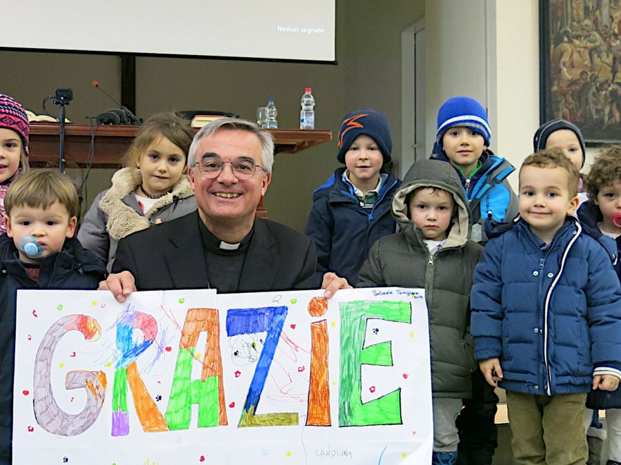 La Pastorale familiare ha cominciata sabato mattina, 19 gennaio, a Lucino il suo cammino di catechesi per il 2019. Ospite del primo incontro il Vescovo Valerio Lazzeri, che nella sua riflessione ha più volte sottolineato alle numerose coppie presenti l’importante compito di testimonianza missionaria che la famiglia ha nella società moderna.«Come in cielo così in terra. La famiglia cristiana testimone missionaria dell’umile speranza del Vangelo». È il tema della lezione/meditazione che il Vescovo Valerio ha tenuto a una quarantina di famiglie nel Collegio diocesano di Lucino. L’incontro di sabato è uno dei tanti passaggi formativi per le famiglie della Diocesi, che seguono la Pastorale familiare diocesana. Il Vescovo ha anticipato, così, il contenuto della sua prossima lettera pastorale, che sarà offerta a tutta la Diocesi per l’inizio della Quaresima. Ha preso spunto dalla lettura dell’Antico Testamento, precisamente dal secondo Libro dei Re, dove si narra delle gesta del profeta Eliseo e di Naamàn, generale del re di Aram, affetto da lebbra. In una profonda analisi dei personaggi in gioco nel racconto e delle variegate dinamiche psicologiche di dubbio, resistenza e affidamento di fronte all’ordine del profeta da eseguirsi per avere la guarigione, il Vescovo ha elaborato il modo con cui noi stessi ci poniamo nelle diverse situazioni esistenziali: dubbio, scoraggiamento, fiducia. La famiglia è proprio il luogo privilegiato in cui il nostro profondo sentire, incontrando l’altro s’imbatte, combatte e si rialza, procedendo nel cammino della vita. E Dio lo si incontra non disertando il luogo vitale del nostro esistere quotidiano, ma facendo di esso il luogo dell’incontro con Lui. Ma come è possibile questo incontro con il Dio della vita senza che la preghiera, come dimensione normale e quotidiana del nostro esistere, divenga l’humus, la terra feconda del dialogo con Lui? Allora, anche le situazioni più difficili possono diventare, come lo fu per Gesù, il luogo in cui imparare l’obbedienza come fiducia nel totale abbandono al Padre. Diversamente da questo atteggiamento, è difficile sentire la vita come esperienza di lieta e coraggiosa speranza. La lezione è terminata con l’incontro del Vescovo Valerio con una ventina di piccoli, che nel frattempo hanno avuto la possibilità di giocare e pitturare in uno dei saloni del Collegio.Sul sito della Pastorale familiare è possibile riascoltare l’incontro, qui sotto è disponibile il video integrale. Inoltre è possibile scaricare il volantino con tutti i prossimi appuntamenti di pastorale familiare per l'anno 2019