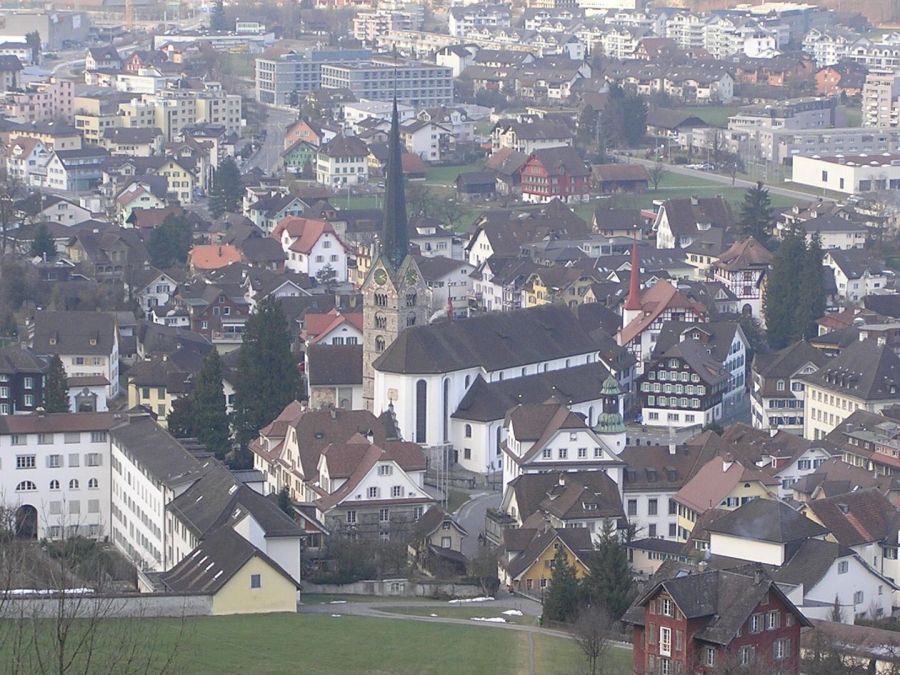 È impossibile non capitare davanti alla chiesa parrocchiale, quando si visita Stans. Si trova infatti nel bel mezzo della piazza principale, in cui confluiscono tutte le vie come a formare una stella.