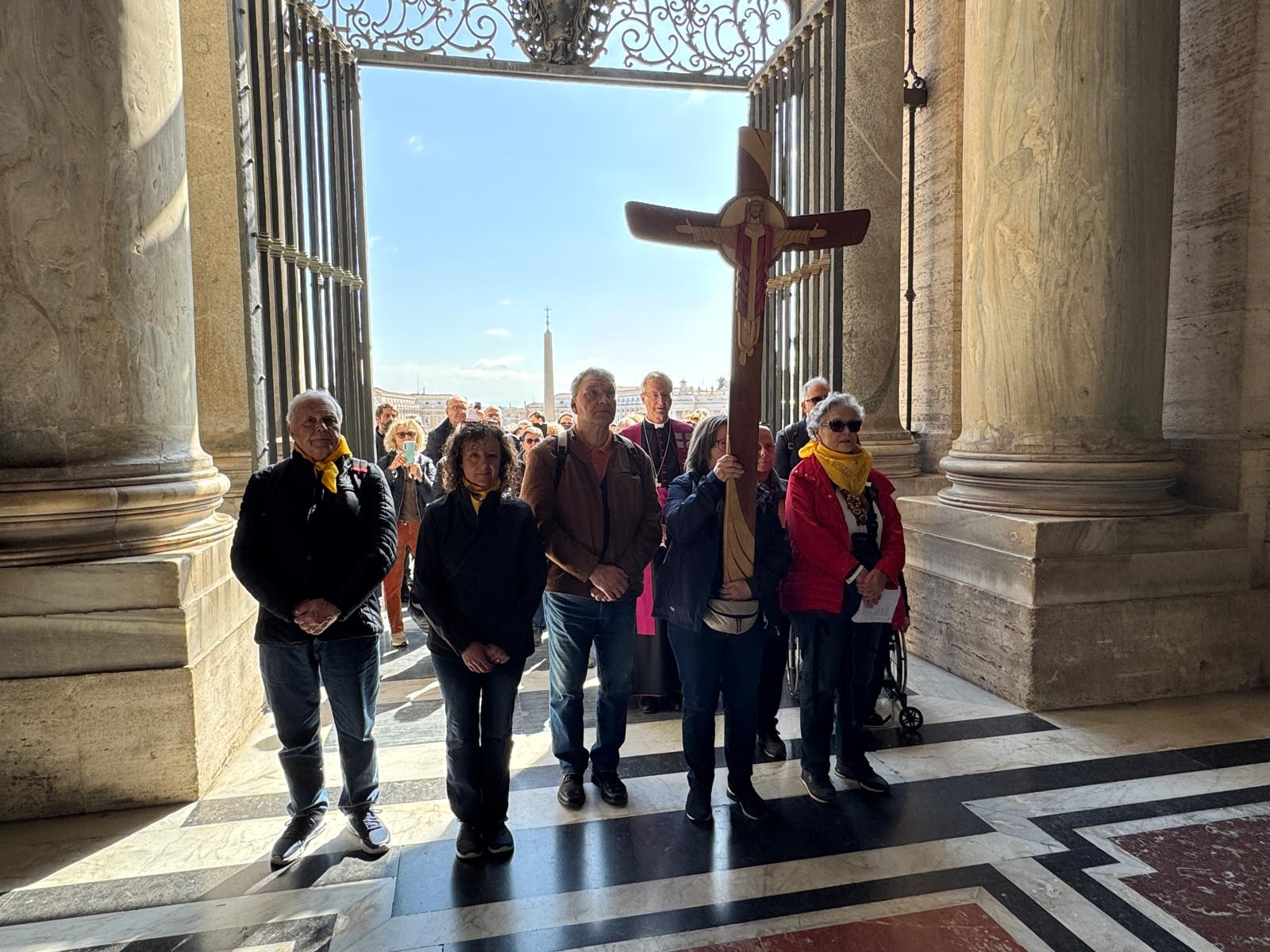 Circa 150 pellegrini ticinesi, guidati dal vescovo Alain de Raemy e accompagnati da una dozzina di sacerdoti, hanno vissuto questa mattina, 8 aprile, l'emozionante passaggio attraverso la Porta Santa della basilica di San Pietro a Roma, nell'ambito del Giubileo. Tra loro, sei rappresentanti dei vicariati della diocesi di Lugano hanno preceduto simbolicamente il vescovo in questo gesto di profondo significato spirituale.