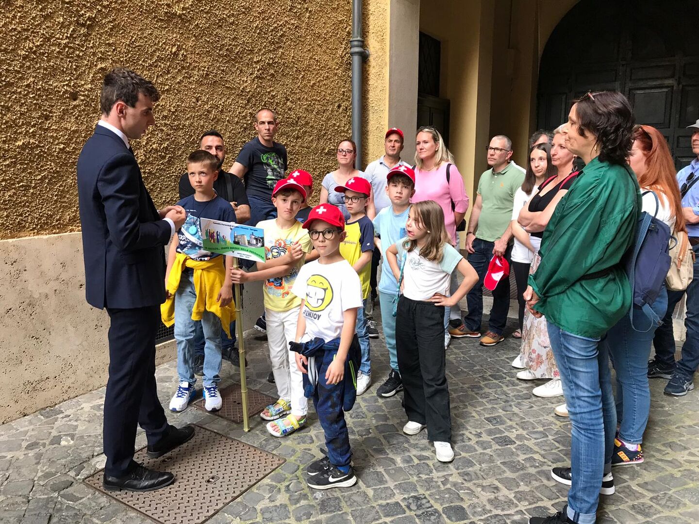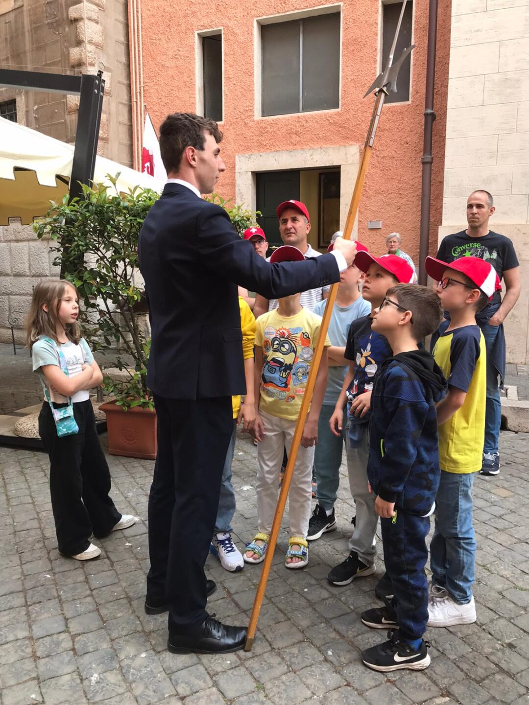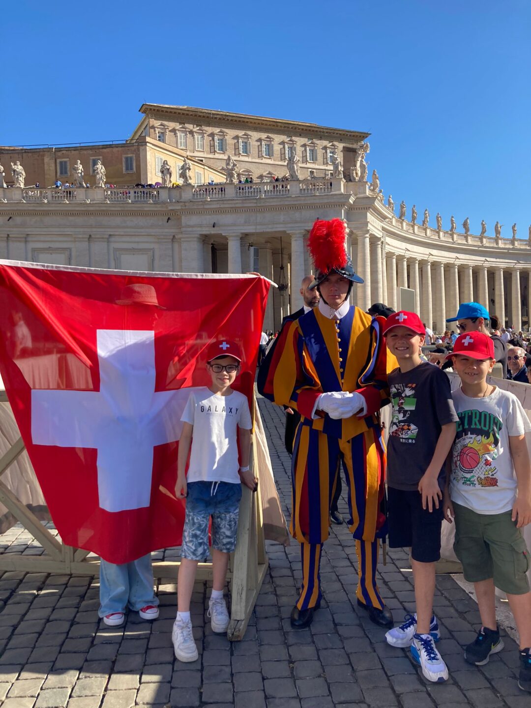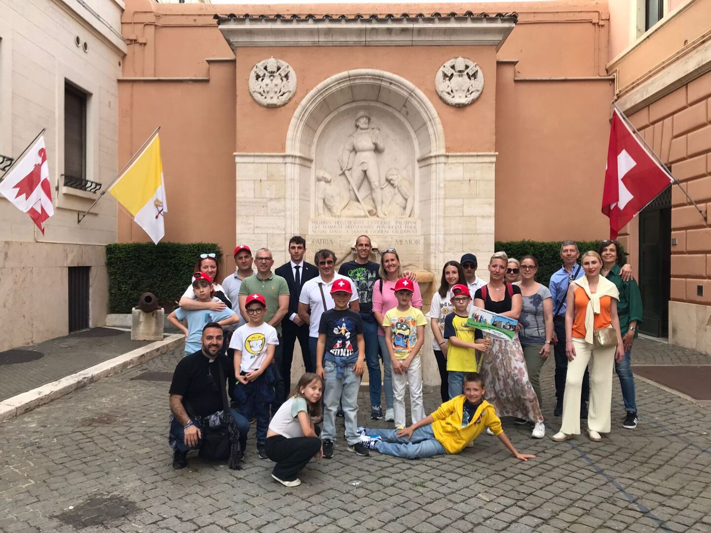 Una proposta del parroco don Davide Droghini rivolta ai bambini che fra pochi giorni riceveranno la Prima Comunione: il gruppo, formato da 24 persone – oltre ai bambini, le catechiste e i genitori –, è partito venerdì mattina in treno. Arrivati a Roma, nel pomeriggio i piccoli ticinesi hanno fatto visita alla Guardia Svizzera Pontificia dove sono stati accolti da Giacomo Porcini di Carona, fresco di giuramento.