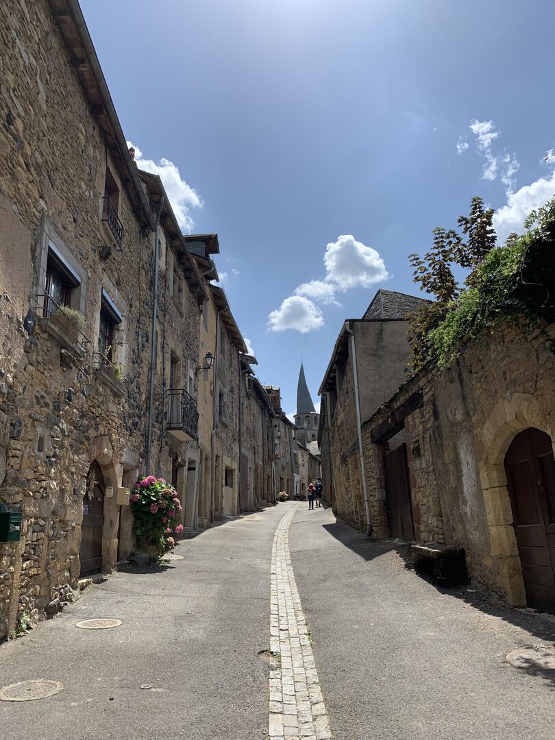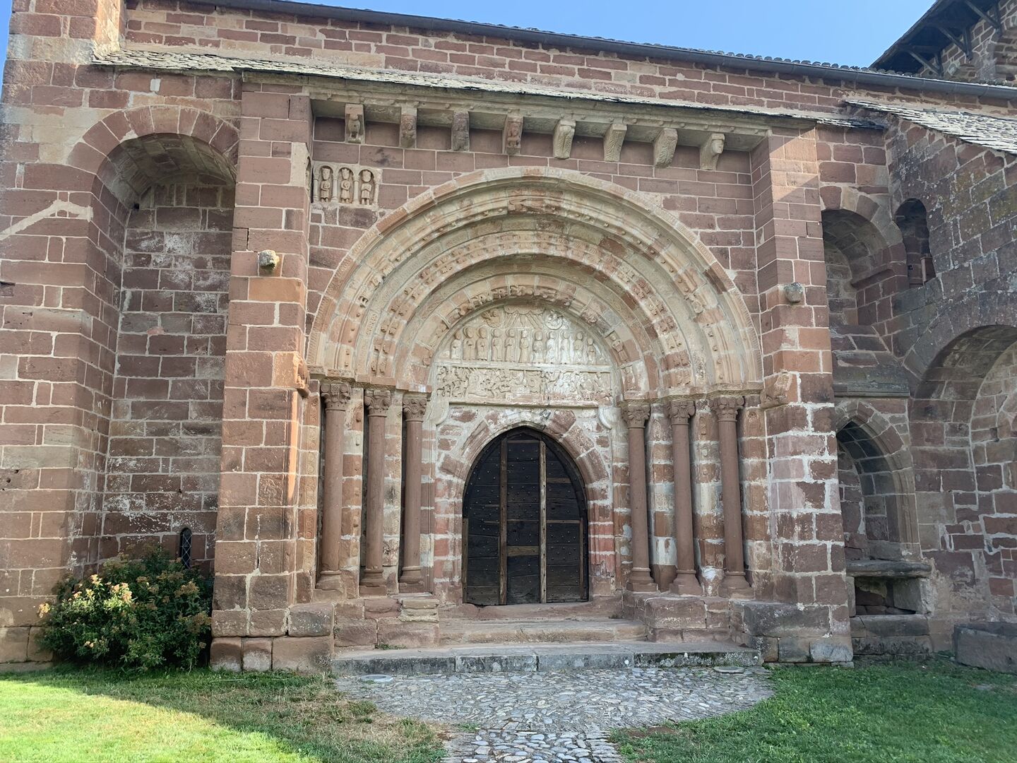 Ripartiamo dalla caratteristica Saint Chély d’Aubrac e ci lasciamo alle spalle il Massiccio Centrale scendendo nella valle dove scorre il fiume Lot attraverso boschi e stradine sterrate. Dopo qualche piccolo villaggio, si arriva a Saint-Côme-d’Olt, borgo con una chiesa dal campanile molto particolare perché “contorto”. Vale la pena passeggiare per il centro storico rimasto intatto. Passando da un bel ponte romanico in pietra ci si dirige verso la sponda sinistra del fiume Lot. Vale un piccolo détour la chiesa di Perse, in alto sopra la collina per i suoi affreschi e il timpano del portico che lascia senza fiato. Si giunge poi a Espalion, città cresciuta intorno al ponte ad arco in arenaria rossa costruito sotto san Luigi, patrimonio dell’Unesco. Il villaggio è dominato da un imponente castello del XV secolo. Proseguendo si arriva al piccolo paesello di Béssuejouls. Assolutamente da vedere la chiesa romanica di Saint Pierre. La sua torre ospita nella parte superiore una piccola cappella raggiungibile attraverso due strette scale a chiocciola. Il presbiterio è decorato con l’Arcangelo Michele e qui molti pellegrini lasciano preghiere scritte. C’è un'atmosfera mistica in questo luogo, ma pochi osano avventurarsi attraverso la stretta scala fino alla cappella superiore. Il cammino prosegue poi in salita in direzione di Estaing. Percorrere certi tratti sotto il sole è piuttosto stancante e la preghiera si fa minimalista, quasi a dire che ogni passo offerto è un’invocazione. Si giunge alla piccolissima località di Trédou, conosciuta per due fatti: poiché qui è nato padre Auguste Arribat, un Giusto tra le nazioni che ha nascosto dei bimbi ebrei durante la seconda guerra mondiale e perché nel cimitero è stata girata una scena del film Saint Jacques… La Mecque. Si prosegue poi prima in pianura su stradine asfaltate e poi con alcuni saliscendi nel bosco da cui già si intravede la bella Estaing. Domina la città il castello della famiglia Estaing e vale una visita anche la vicina chiesa di Saint Fleuret. Qui troviamo anche la possibilità di pregare la compieta con un gruppo di pellegrini. Il percorso prosegue a tratti sulla strada ombreggiata e in salita su sentieri. La quota si alza e si attraversano piccoli villaggi e fattorie fino ad arrivare a Golinhac, con la sua chiesa dedicata a san Martino che conserva le fondamenta romaniche di un priorato benedettino. Vale la pena salire un po’ più in alto dopo il villaggio alla cappella Notre Dame des Hauteurs, per ammirare il panorama sui monti dell’Aubrac e l’Auvergne. La prima parte della tappa si snoda attraverso valli e gole. Si passano piccoli borghi e che bella sorpresa quando qualche privato offre sul bordo della strada un bicchiere d’acqua o di tè e dei biscotti per dare forza ai pellegrini. Tra campi, nuvole, mucche al pascolo e qualche conchiglia messa qua e là per indicare la direzione, giungiamo a Sénergues con il castello e la chiesa di san Martino del IX secolo. Da qui il cammino è in discesa e come finale di tappa non è ideale. Ma la vista sulla chiesa abbaziale di Conques è spettacolare e toglie ogni fatica.