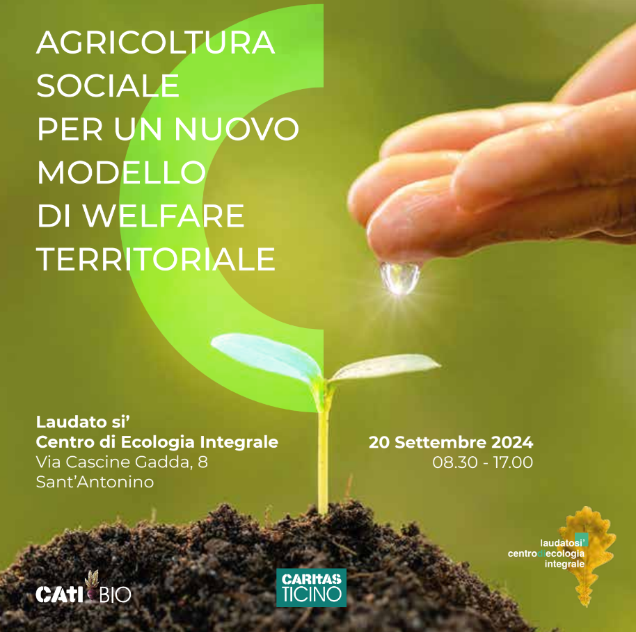 A S. Antonino, venerdì 20 e sabato 21 settembre 2024, Caritas Ticino invita tutti gli interessati ad un Convegno "AGRICOLTURA SOCIALE - Per un nuovo modello di welfare territoriale" e all'inaugurazione dell’Azienda biologica e sociale CATIBIO e di "Laudato si’", il nuovo Centro di ecologia integrale.