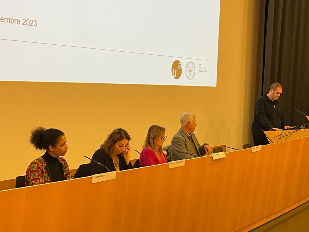 Si è tenuta ieri sera, presso l'Auditorium dell'Università della Svizzera italiana (USI), la serata "Dallo studio alla scrittura: tre Autrici ticinesi per una sola Facoltà", con la partecipazione di Myriam Di Marco, Stella N'Djoku e Laura Quadri. Moderate da Michele Amadò, le tre Autrici hanno potuto parlare del loro periodo di studio presso la Facoltà e degli ultimi rispettivi tre libri: "Mamma ritorneremo? Il mio normalissimo Israele" (ed. San Paolo), il reportage di Myriam Di Marco in cui si racconta l’esperienza di una mamma e ricercatrice universitaria che decide di vivere alcuni mesi con sua figlia nello Stato di Israele; "Il tempo di una cometa" (ed. Ensemble), prima raccolta poetica di Stella N'Djoku; e "Una fabula mystica nel Seicento italiano: Maria Maddalena de' Pazzi e le Estasi (1609-1611)", saggio di Laura Quadri che indaga la fortuna letteraria delle Estasi della Santa fiorentina nel Seicento. La serata è stata organizzata nel contesto dei festeggiamenti per il 30esimo della Facoltà di teologia, festeggiamenti ancora in corso e che proseguiranno anche nel 2024.