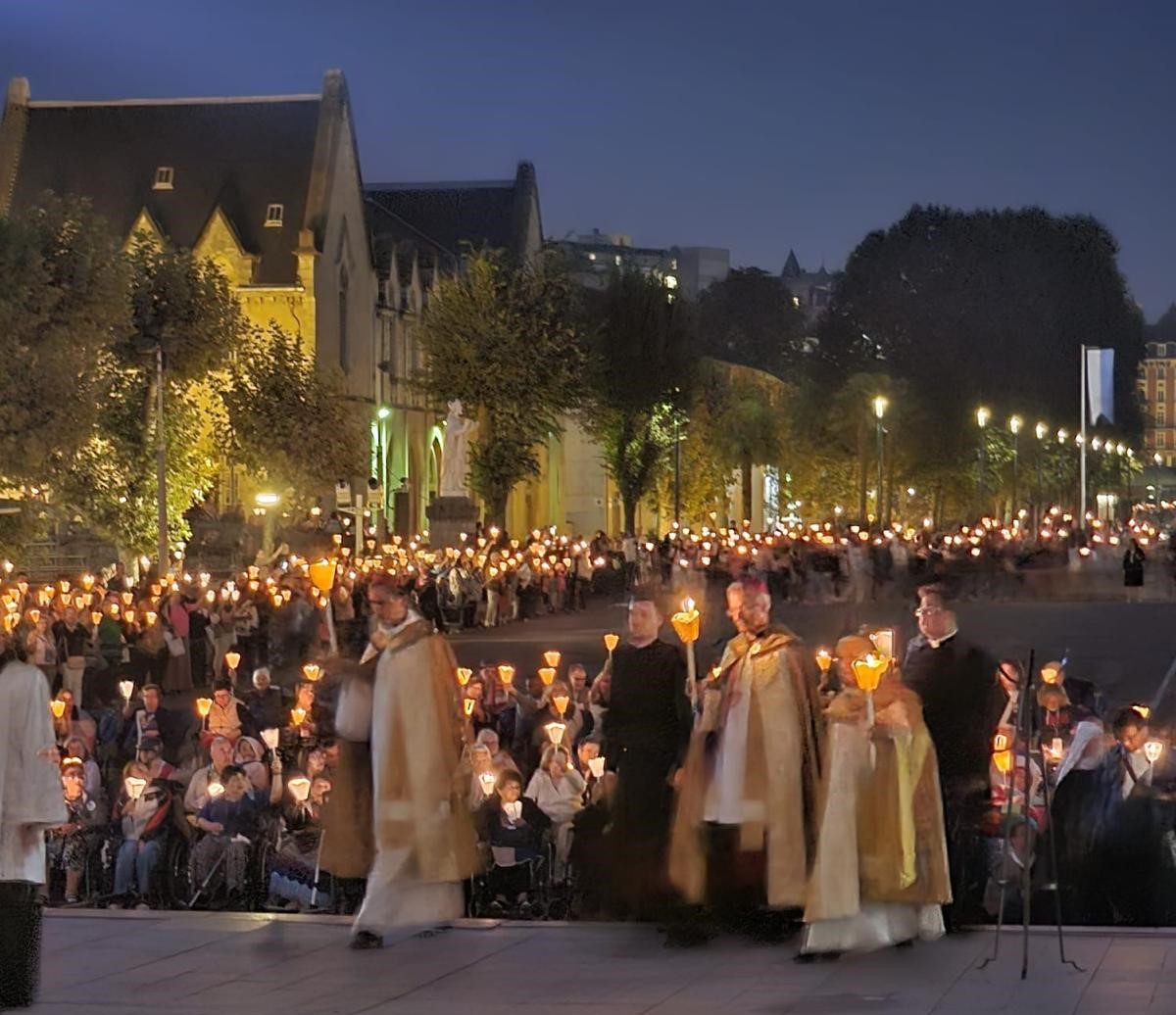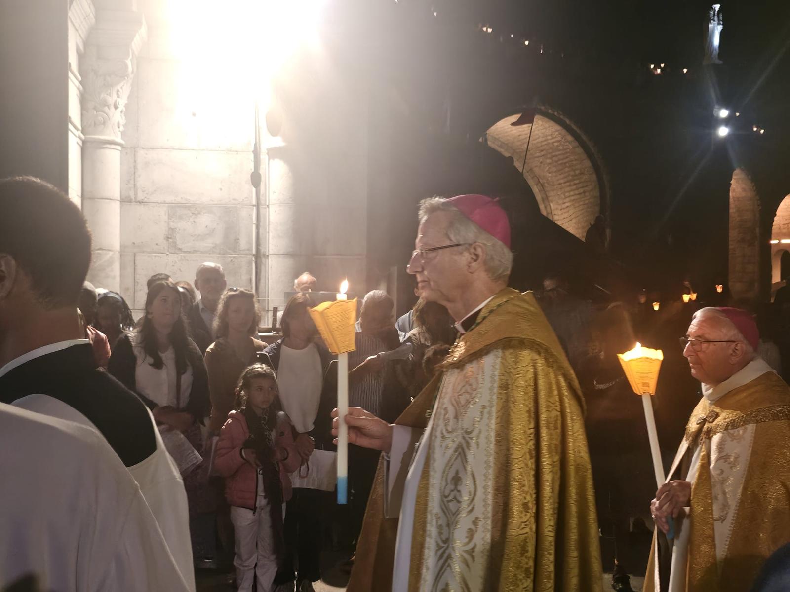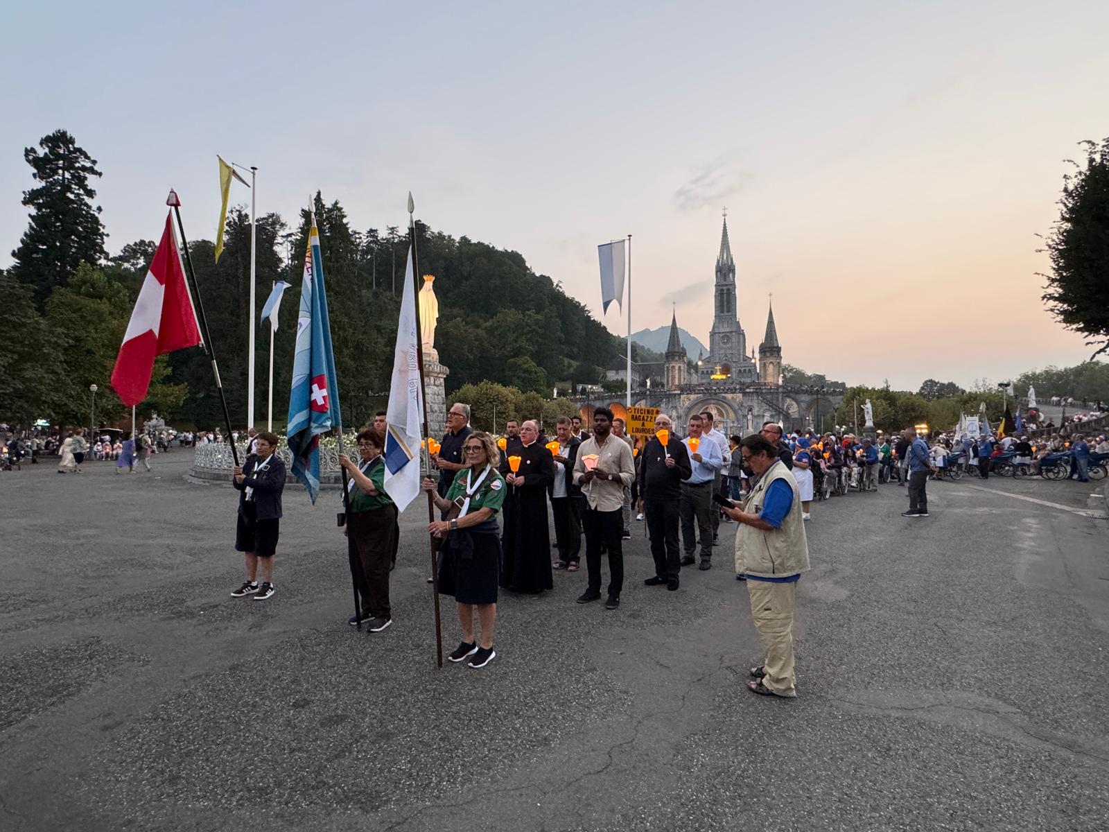 La giornata si è conclusa con la sempre sentita e suggestiva processione aux Flambeaux, un momento per pregare insieme ai pellegrini da tutto il mondo radunati a Lourdes in questa settimana. È stata presieduta dal nostro amministratore apostolico mons. Alain de Raemy.
