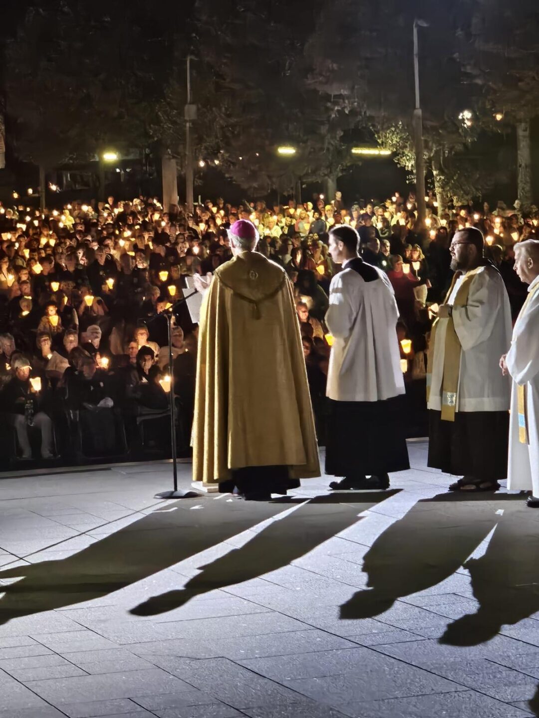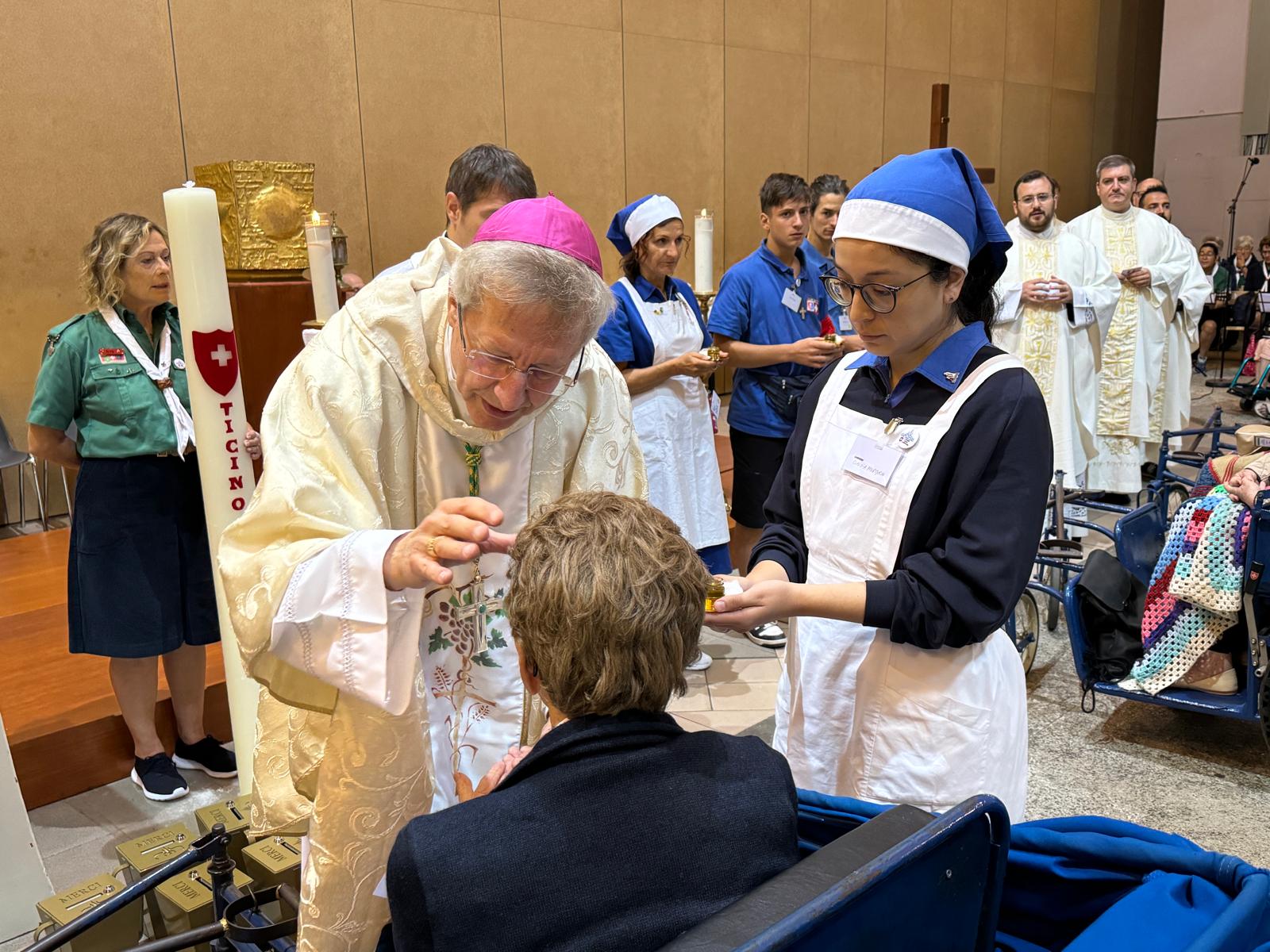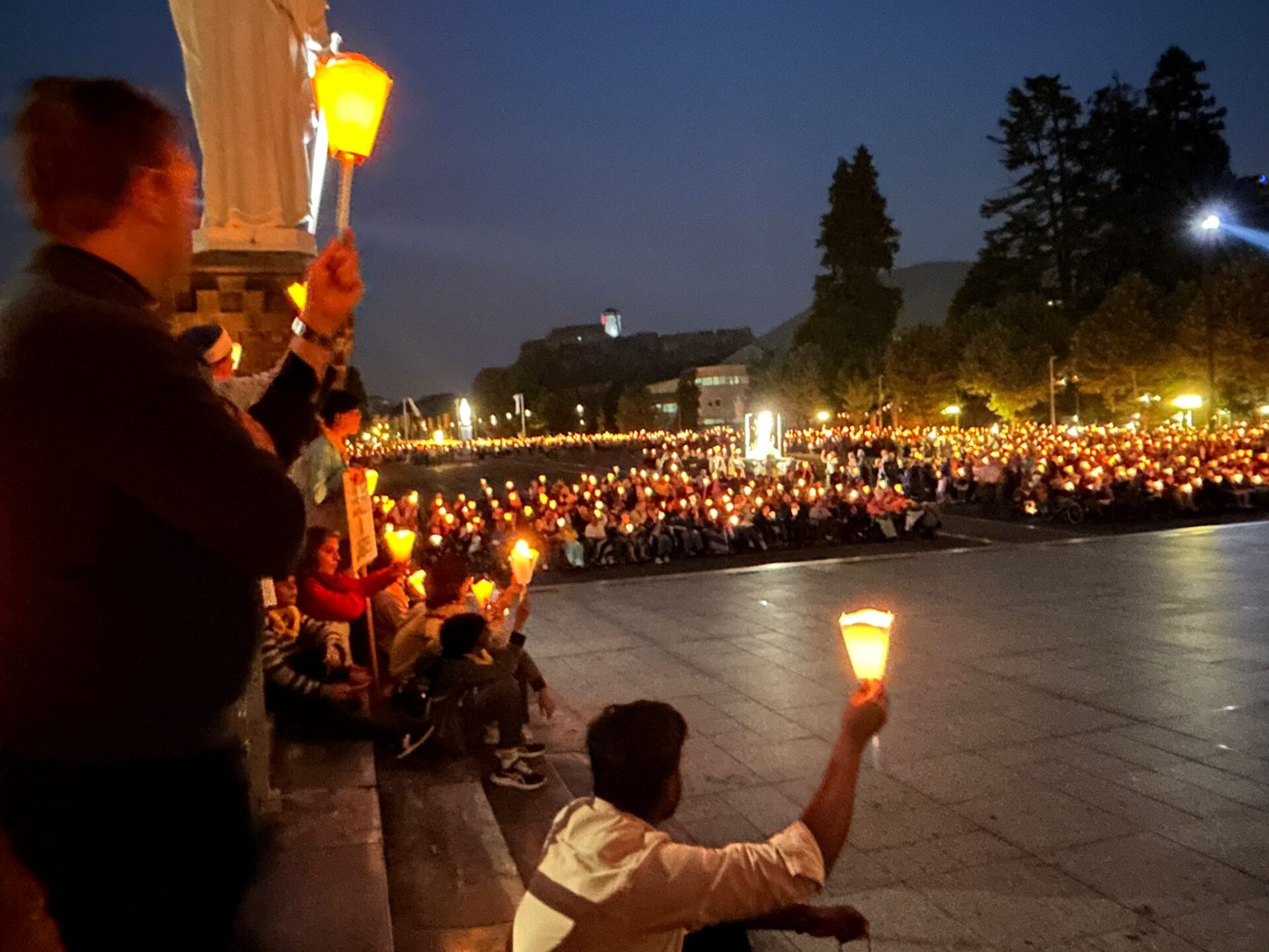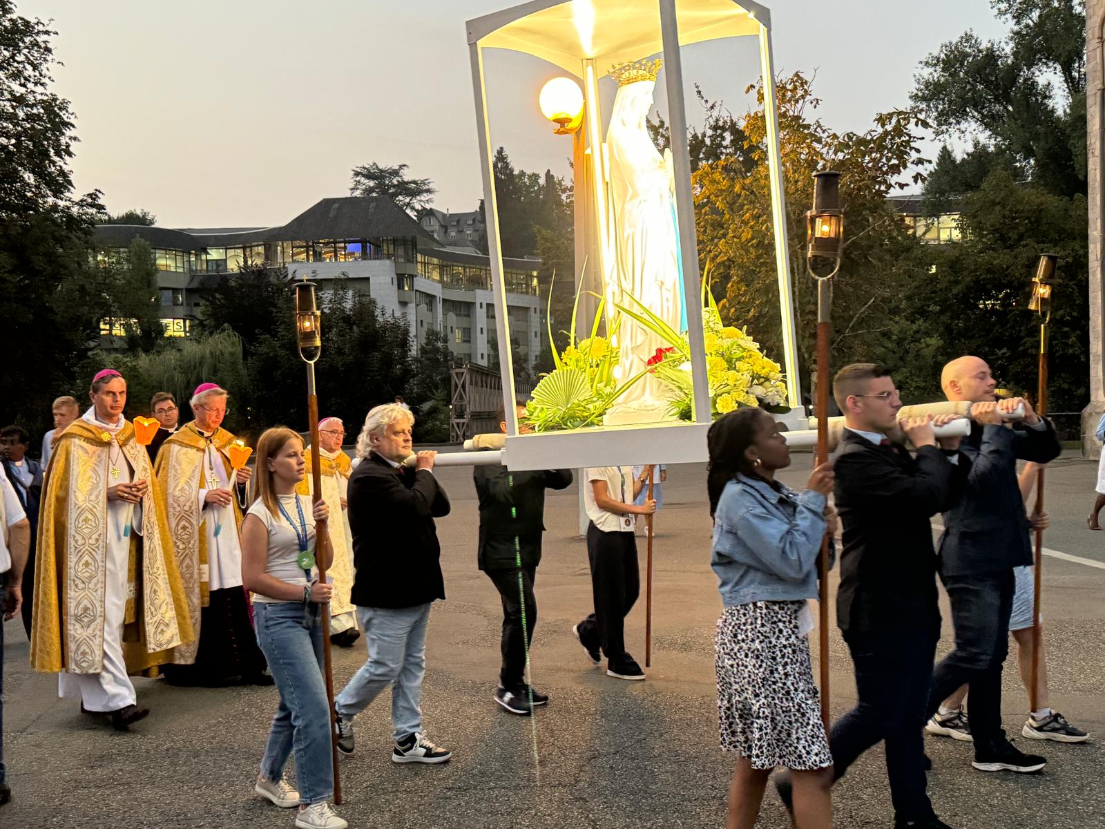 La giornata si è conclusa con la sempre sentita e suggestiva processione aux Flambeaux, un momento per pregare insieme ai pellegrini da tutto il mondo radunati a Lourdes in questa settimana. È stata presieduta dal nostro amministratore apostolico mons. Alain de Raemy.