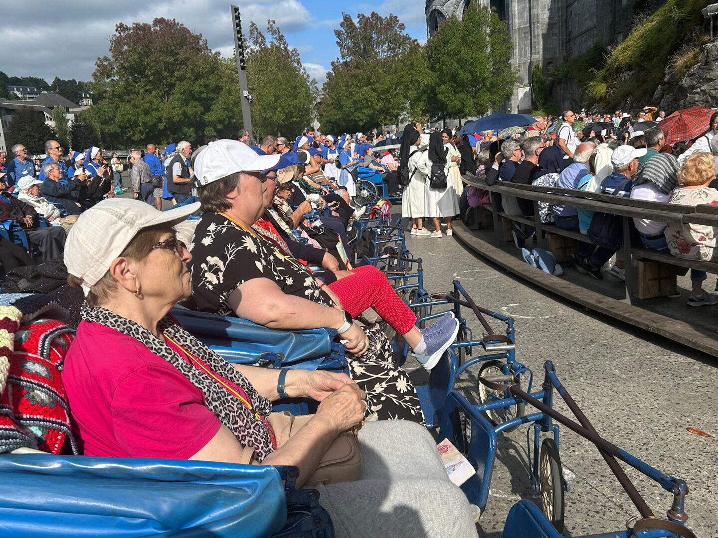 Il terzo giorno è partito presto e sotto pioggia, ciò nonostante non ha impedito ai pellegrini di radunarsi per meditare il mistero della passione di Cristo durante la via Crucis alle 5.30 del mattino. Il punto principale della giornata è stato la Messa internazionale presieduta dal vescovo di Bayeux e Lisieux, Mgr Jacques Habert, e concelebrata da diversi altri sacerdoti tra i quali anche il nostro amministratore apostolico Alain de Raemy.