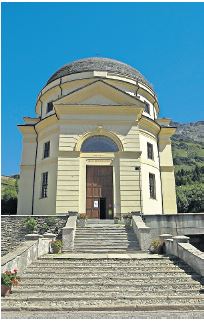 All’altitudine di 1171 metri sul mare si giunge a Pian San Giacomo, davanti all’omonima chiesa, citata già dal 1419. Questa località ha conosciuto un piccolo sviluppo turistico, come testimoniano i numerosi châlets sparpagliati ai bordi della piana ricca di prati e zone naturali. Dopo questa (benefica) pausa l’itinerario riprende a risalire e continua a snodarsi tra boschi, abetaie e cascate. Pian piano lo sguardo si apre dal basso dei vasti alpeggi, a mirare le cime maestose che fanno da contorno al paesaggio. Si giunge infine nella conca di San Bernardino, principale destinazione turistica della Mesolcina, conosciuta nell’Ottocento per le virtù curative della sua acqua minerale, meta anche per tranquille passeggiate intorno ai laghetti. Interessanti la chiesa Rotonda, dedicata a San Bernardino e che ricorda la chiesa di San Carlo al Corso a Milano, al centro del Villaggio, ai piedi del poggio dove si trova e l’antica chiesetta di S. Bernardino e Sebastian.